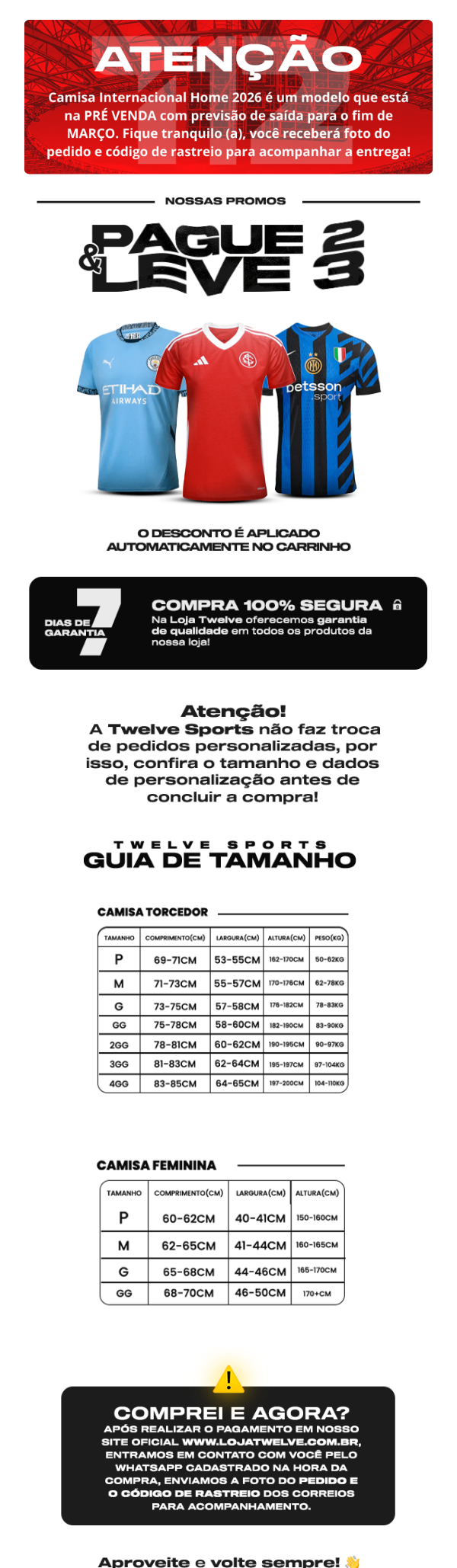 Camisa Internacional III 25/26 s/n Torcedor Masculina - Preto - comprar online
